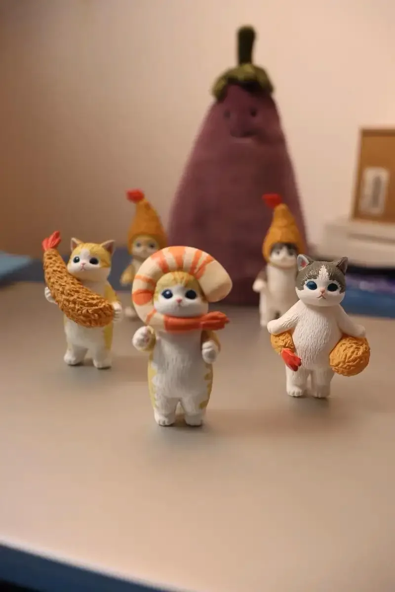 • Great for cosplay & role-playing – these cats are dressed in tempura fried shrimp costumes, making them ideal for cosplay enthusiasts and anyone who loves quirky, themed collectibles.