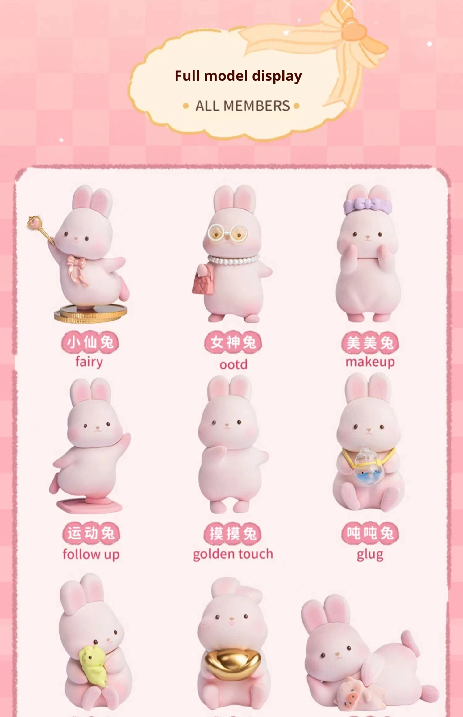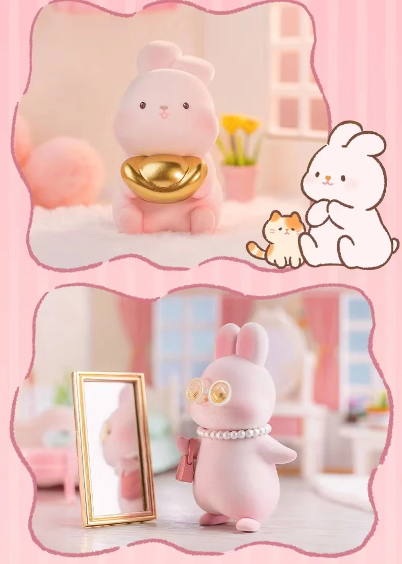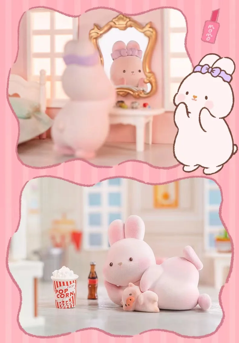 Bring adorable charm to any space with the MOMO Bunny Daily Day Series blind box! These kawaii flocking rabbit figures are perfect as creative desktop decorations and fun toys for kids.