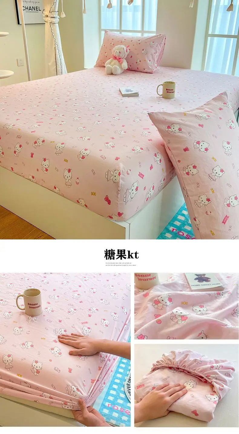 Transform your bedroom into a kawaii haven with this Sanrio Hello Kitty washed cotton bed cover and pillow cover set! Featuring adorable anime-style prints, this full surround bed sheet set is soft, cozy, and perfect for adding a cute touch to your room.